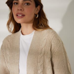 With cable knit detail down the front and on the arms, this knitted cardigan is a staple knit to add to your wardrobe.