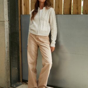 The ribbed cuffs, hem and collar creates a sporty edge, but the cable knit body is sure to keep you snug in the colder weather.