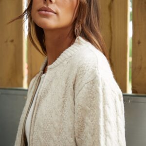 Introducing our knit bomber jacket – a stylish combination of the classic bomber with a contemporary flair.