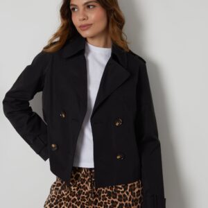 Get the coveted seasonal favorite – the cropped trench coat – a staple to complete your year-round outerwear collection.